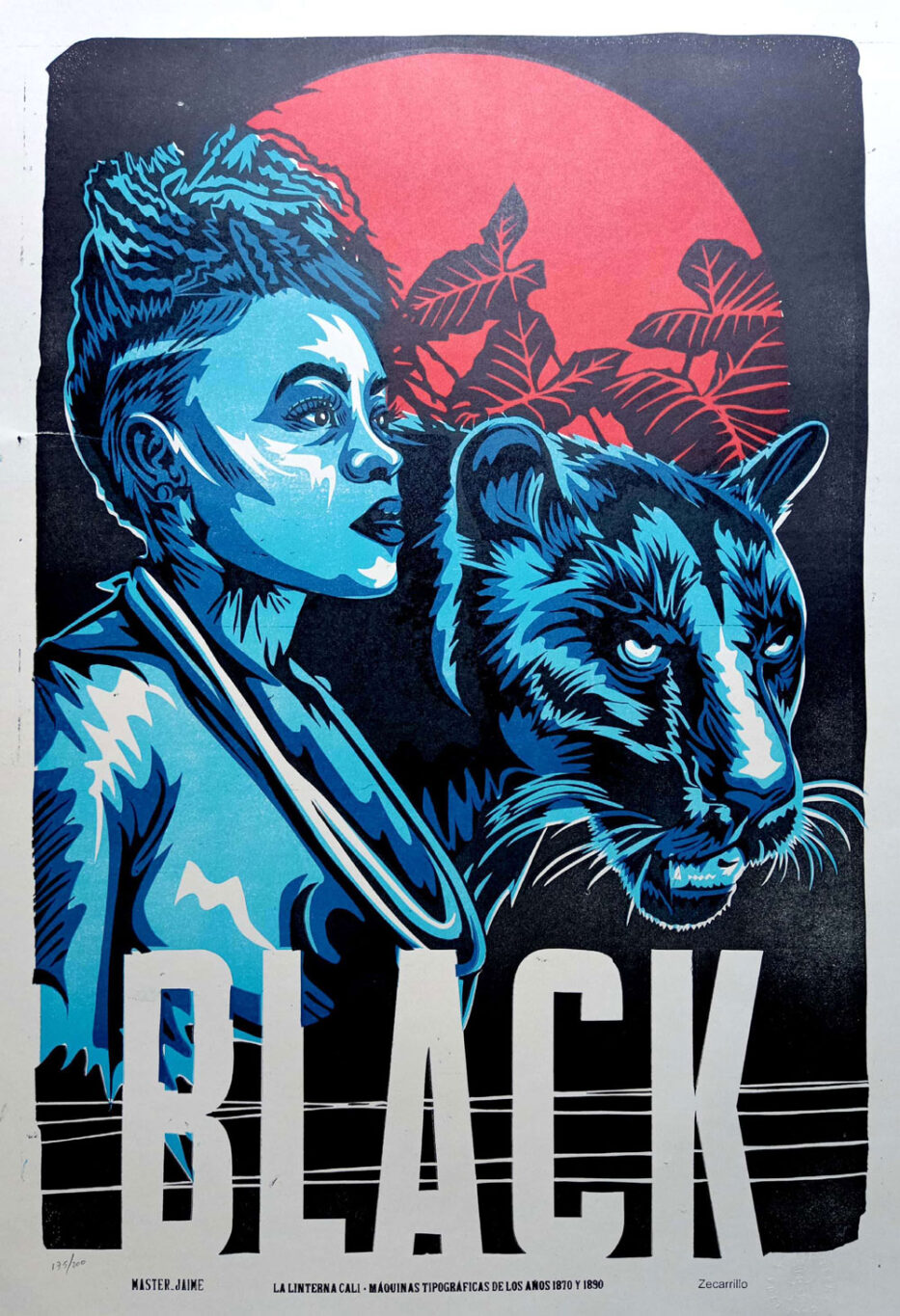 Cartel impreso en Earth Pact de 150 gramos, grabado en linóleo por los maestros de la linterna e impreso en maquinas de los años 1870 y 1890.
