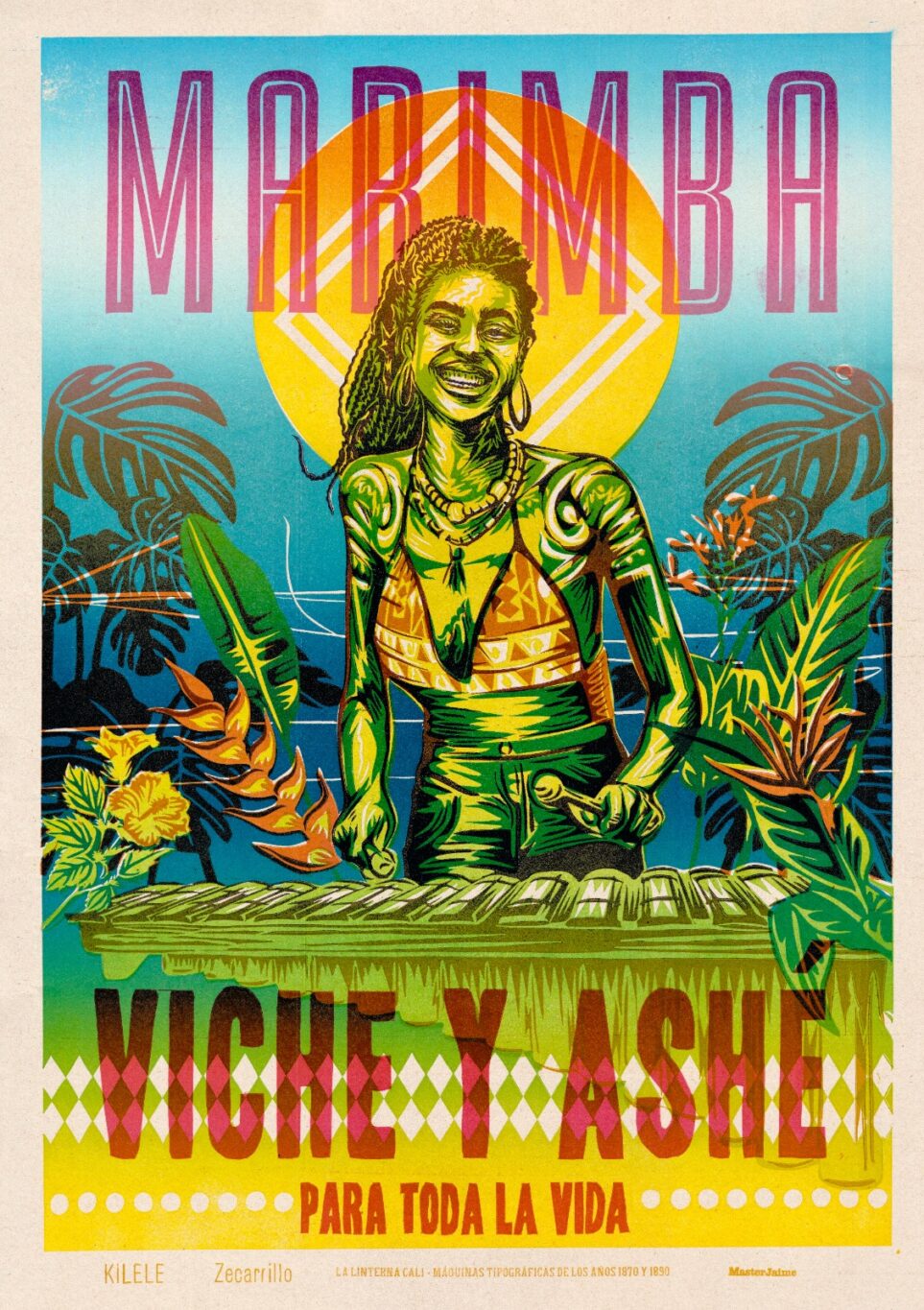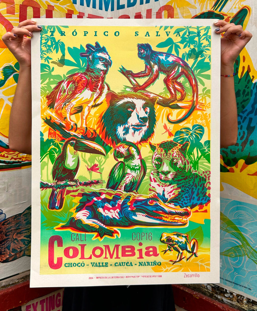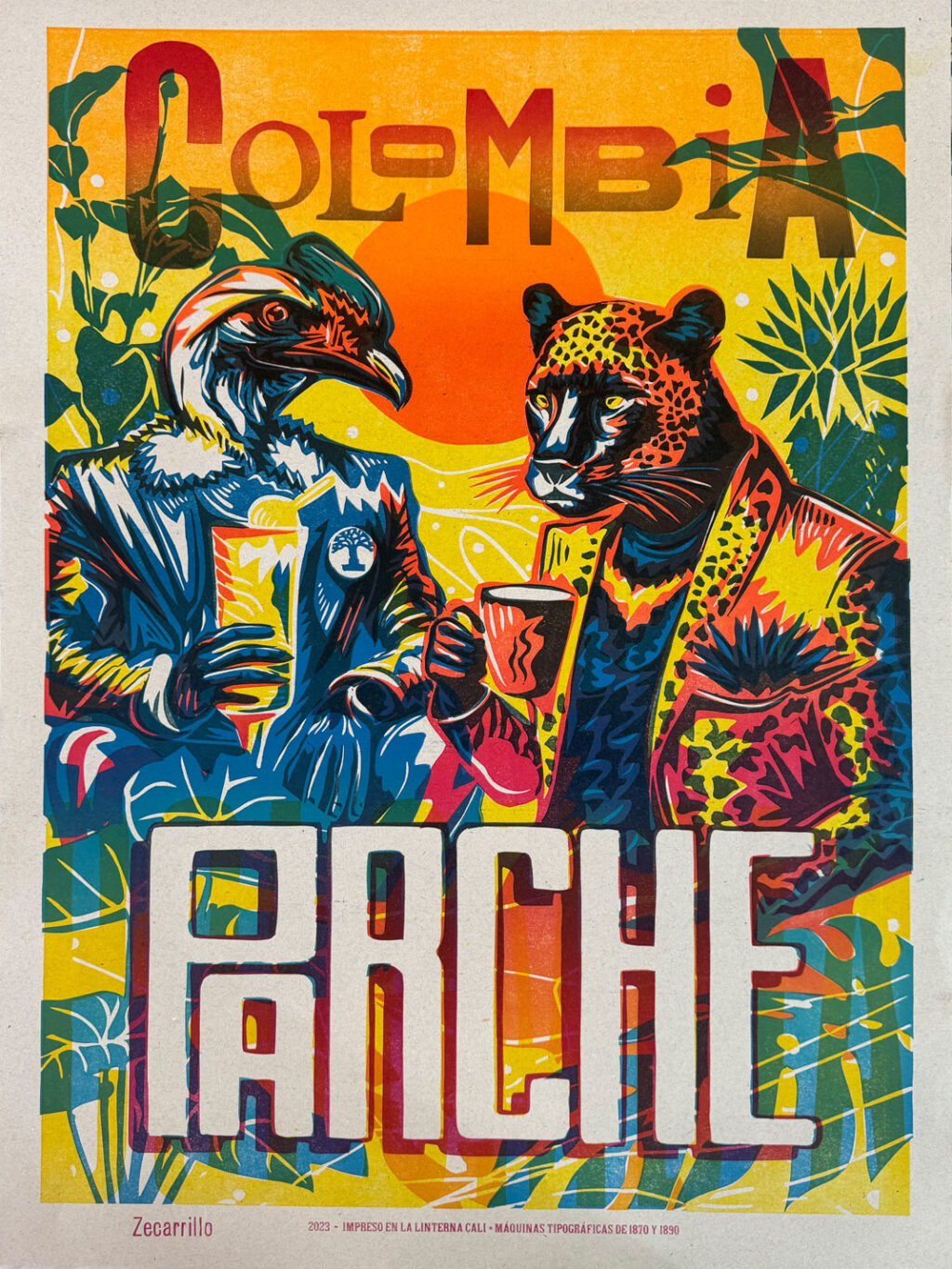 Cartel impreso en Earth Pact de 150 gramos, grabado en linóleo por los maestros de la linterna e impreso en maquinas de los años 1870 y 1890.