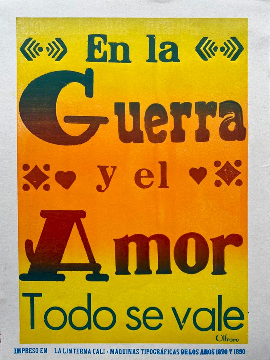 Cartel impreso en papel Earth Pact de 150 gramos, composición tipográfica e impresión por los maestros de la linterna en maquinas de los años 1870 y 1890.