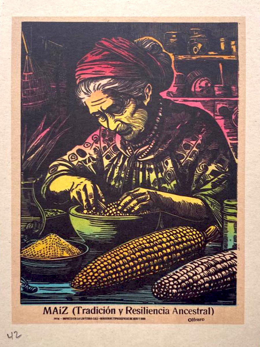 Cartel impreso en Earth Pact de 150 gramos, grabado en linóleo por los maestros de la linterna e impreso en maquinas de los años 1870 y 1890.
