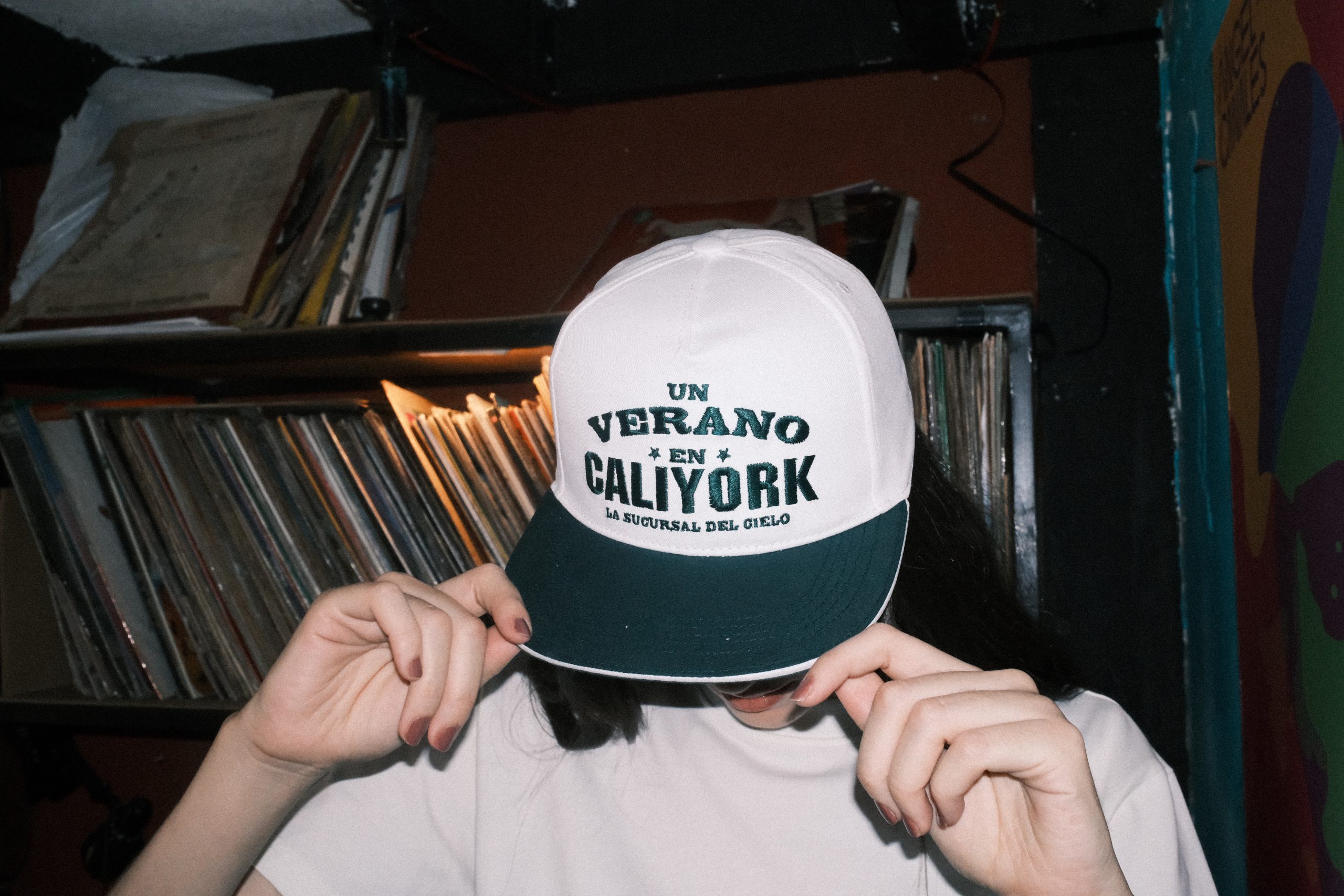 GORRA BLANCA CALIYORK Fit Plana, 5 paneles , bordada con broche de plástico