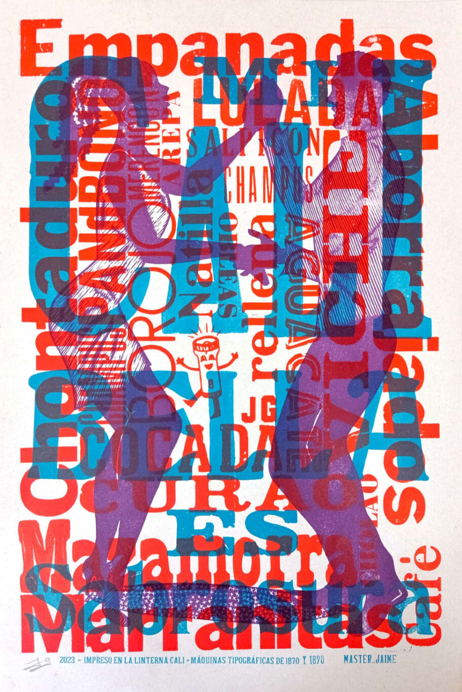 Cartel impreso en Earth Pact de 150 gramos, elaborado con tipos móviles, por los maestros de la linterna e impreso en maquinas de los años 1870 y 1890.