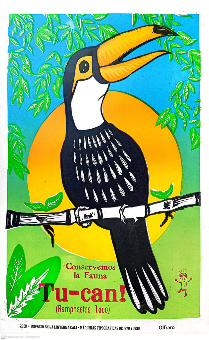 Imágen escaneada de nuestros carteles elaboradorados en linoe, impresa en litográfia, en la cual se imprime por medio de una plancha que sirve como hoja neutra en la cual se plasma toda la información que se necesita imprimir sobre el papel.
