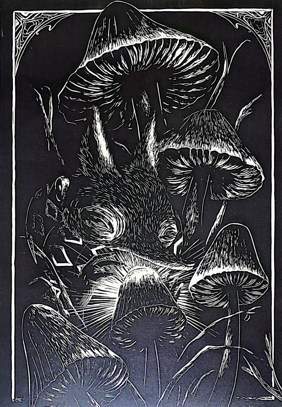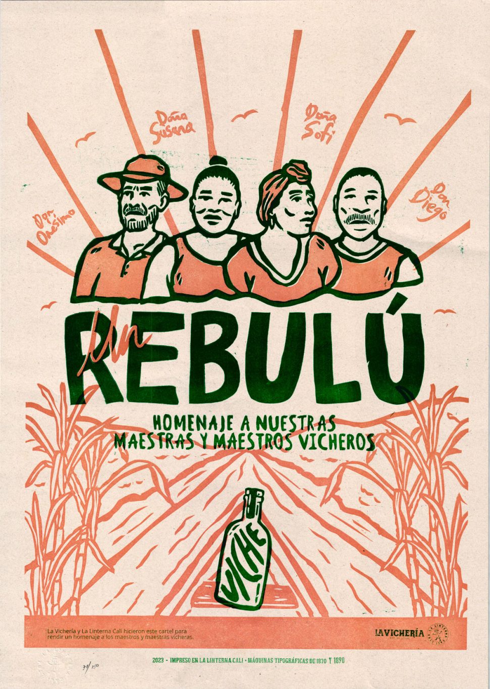 Cartel impreso en papel Earth Pact de 150 gramos, tallado sobre linóleo, por «Artistas Residentes» e impreso en maquinas de los años 1870 y 1890.
