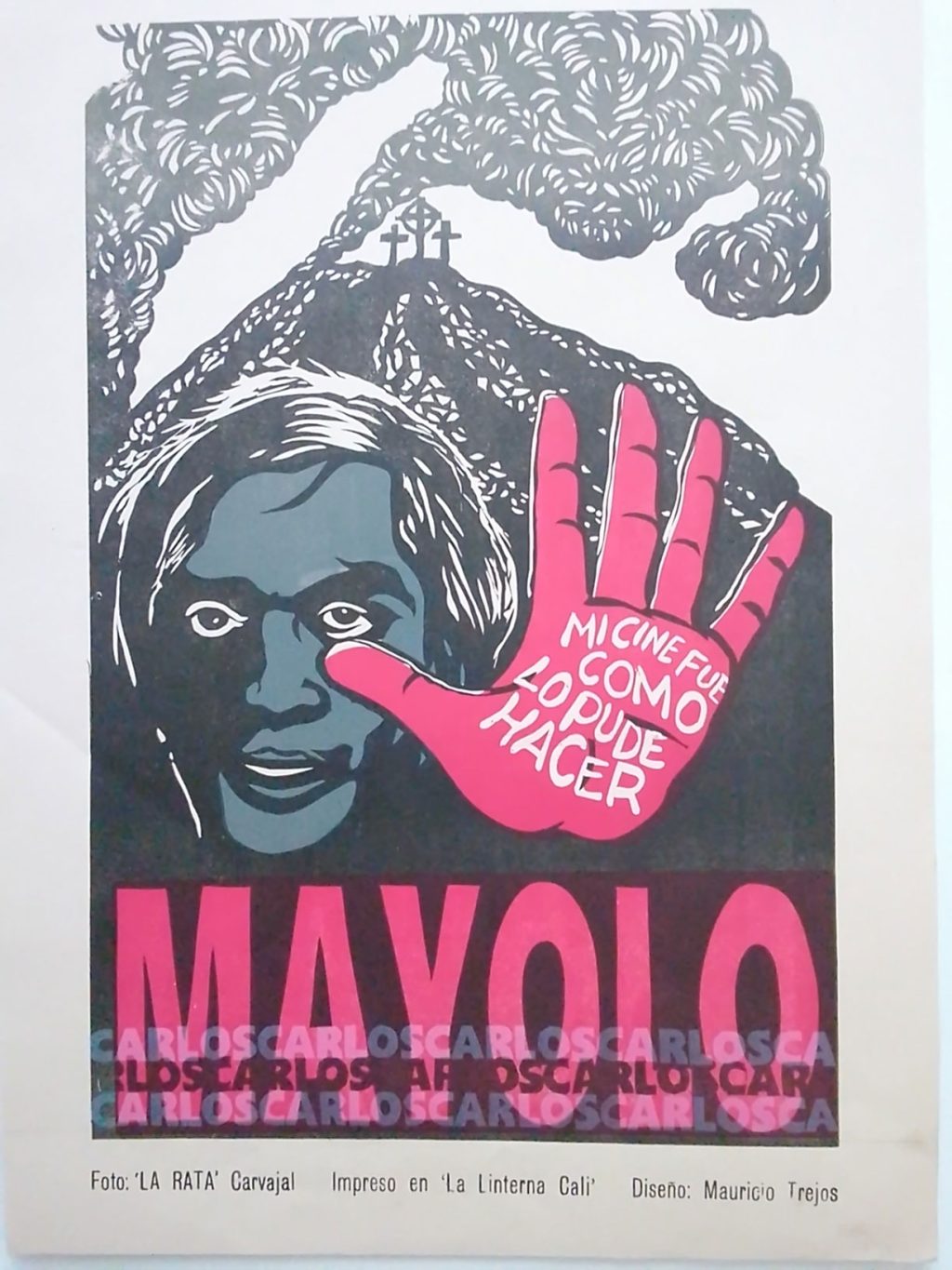 Cartel impreso en papel Earth Pact de 150 gramos, tallado sobre linóleo, por «Artistas Residentes» e impreso en maquinas de los años 1870 y 1890.