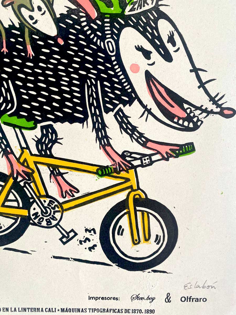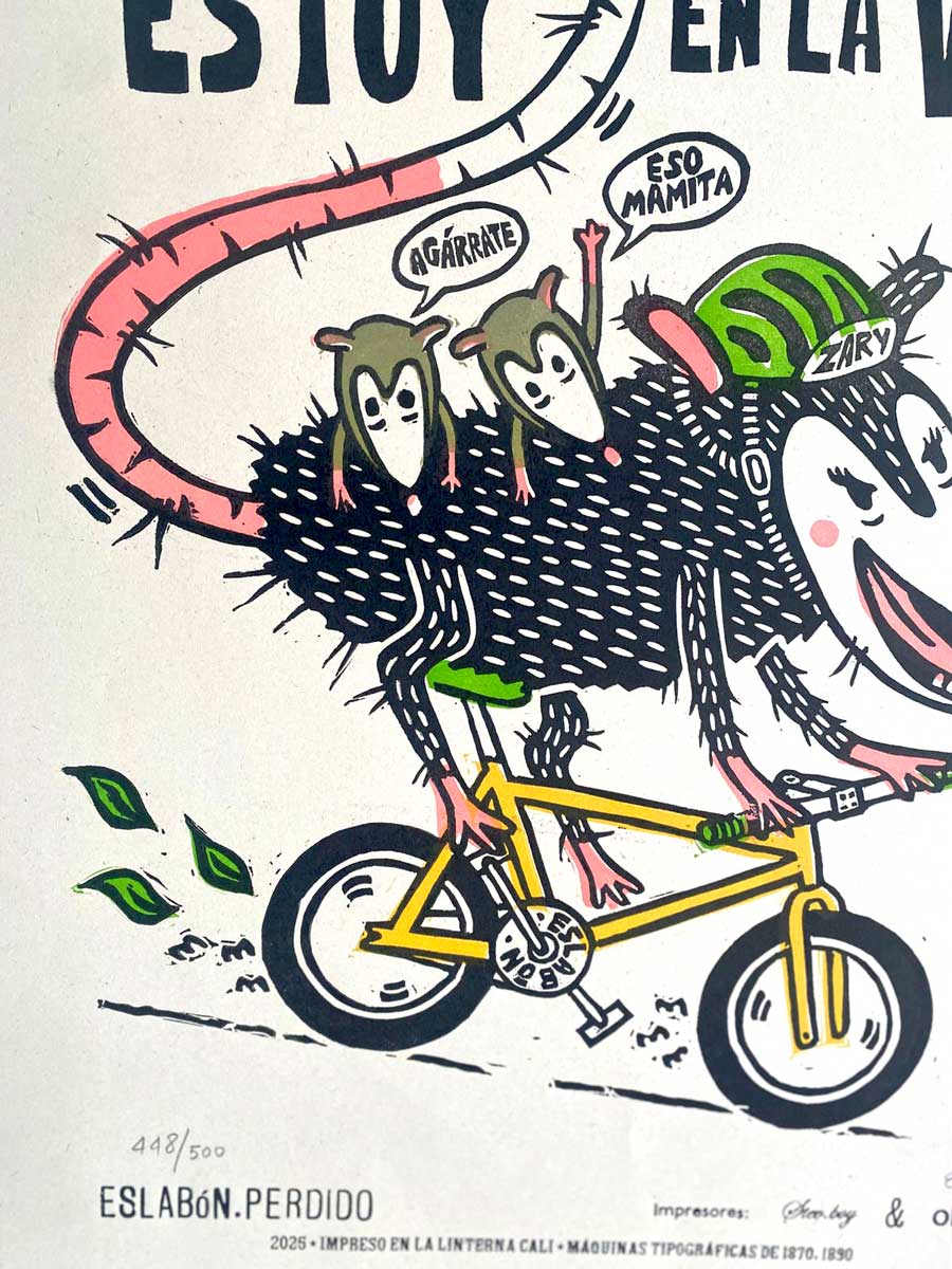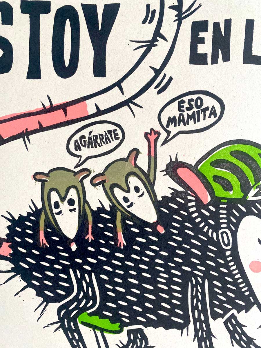 Cartel impreso en papel Earth Pact de 150 gramos, tallado sobre linóleo, por «Artistas Residentes» e impreso en maquinas de los años 1870 y 1890.